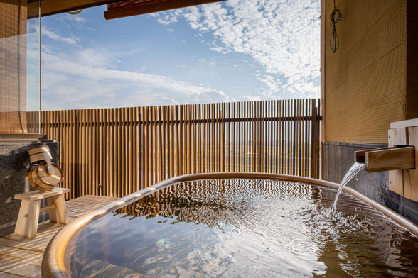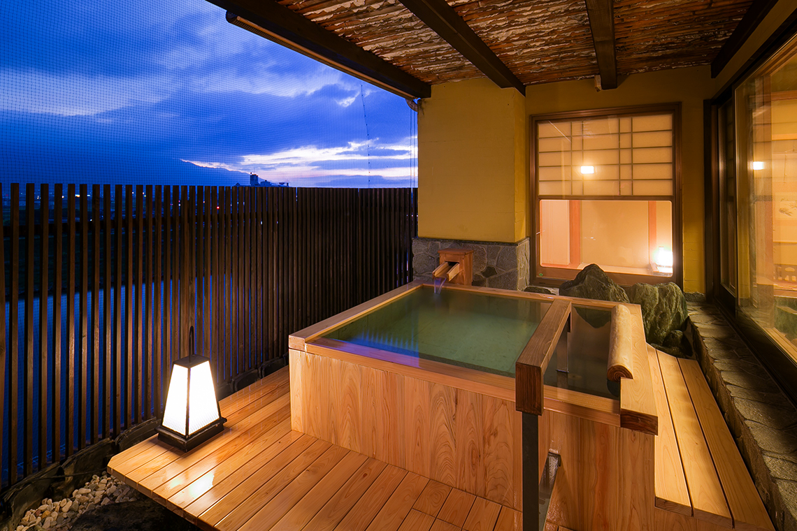 6Fフロアには3つの特別室がございます。すべてに天然かけ流しの露天風呂付。