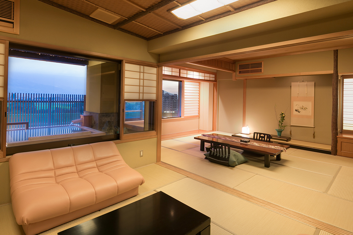 筑後川と耳納連山のまるで絵画のような眺望が自慢の特別室です。